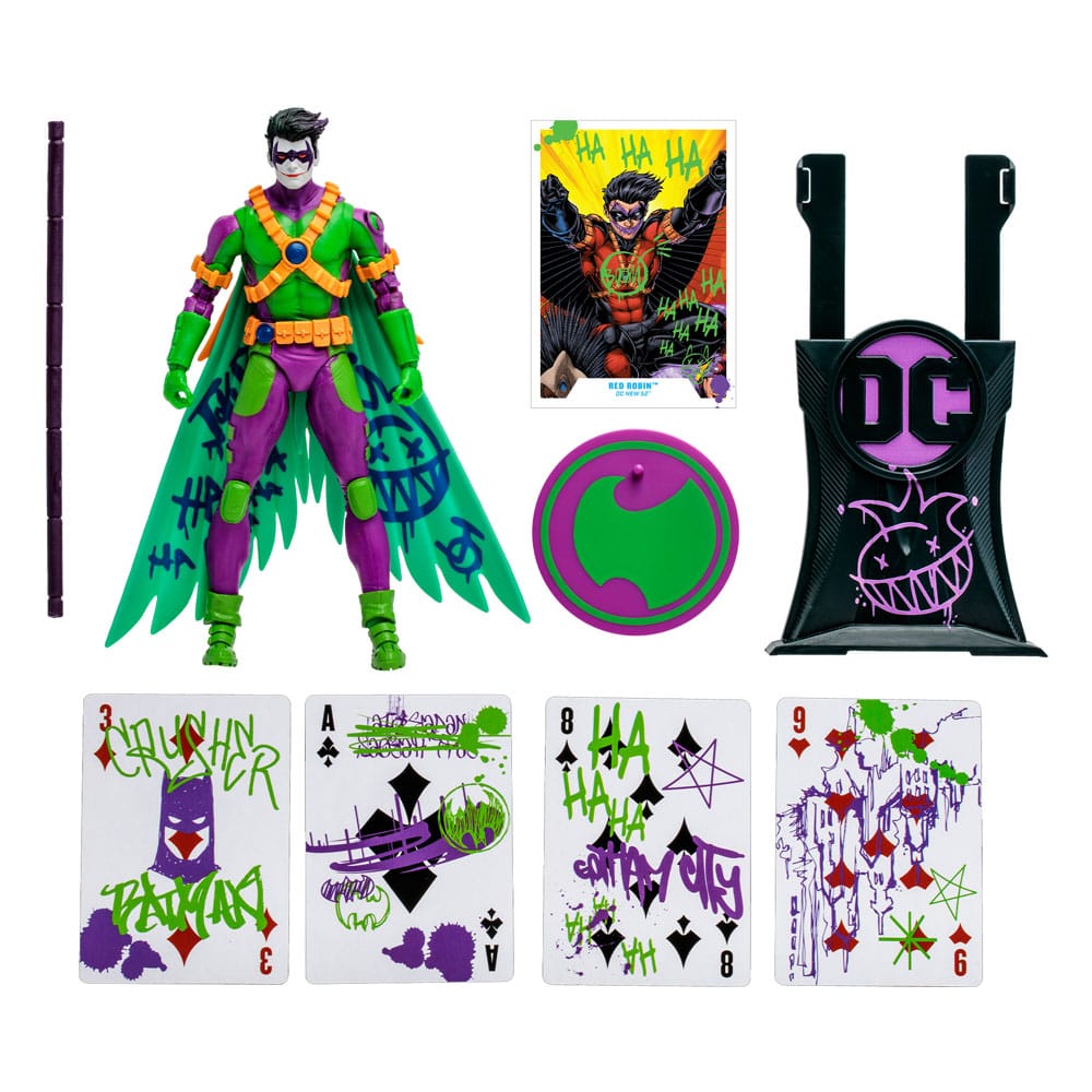 - Uključuje Jokerizirane dodatke: 4 karte, držač za kolekcionarske kartice, postolje, kao i Red Robinov Bo štap