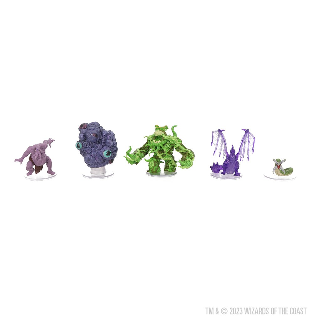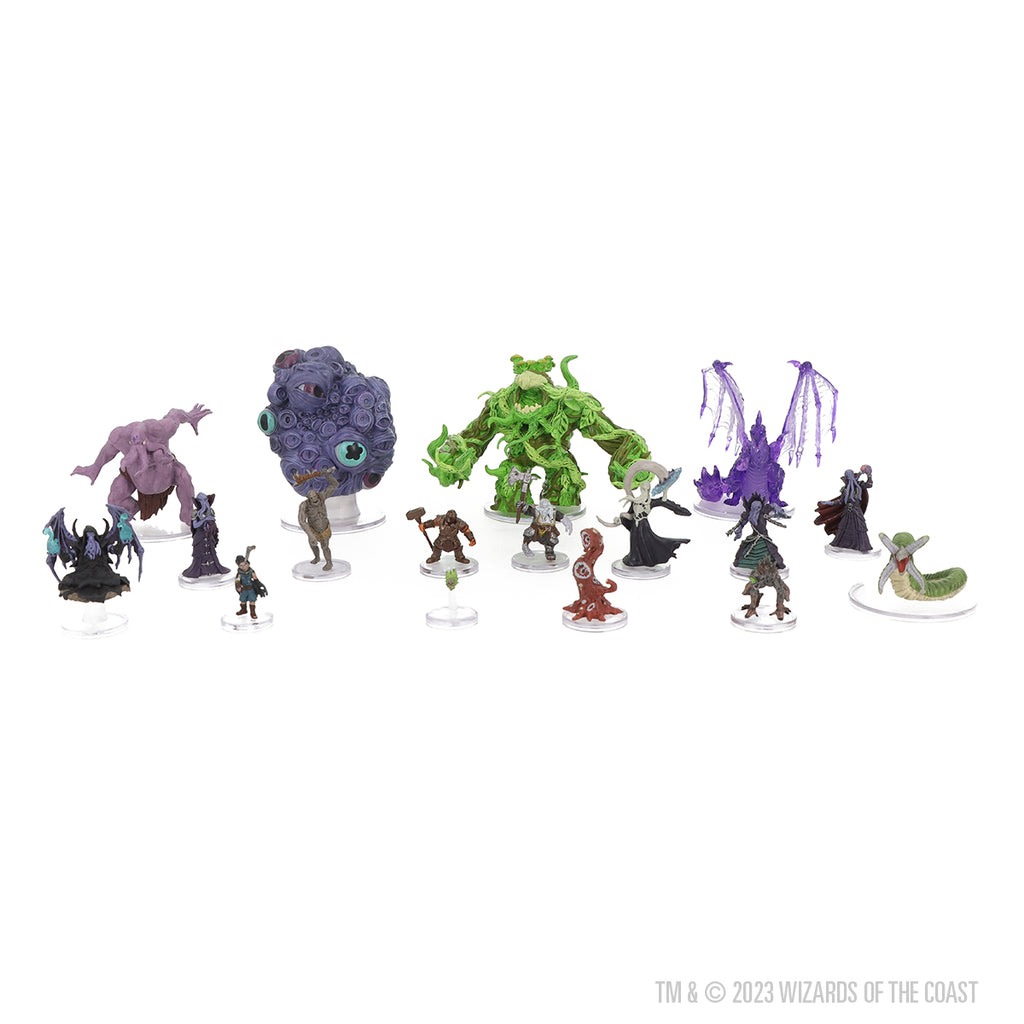 Collect all 47 miniatures from newest set of randomly sorted monsters and characters featuring villains like Nezznar the Spider and nightmarish monsters like the grotesque Otyugh Mutate and Ettin Ceremorph.
