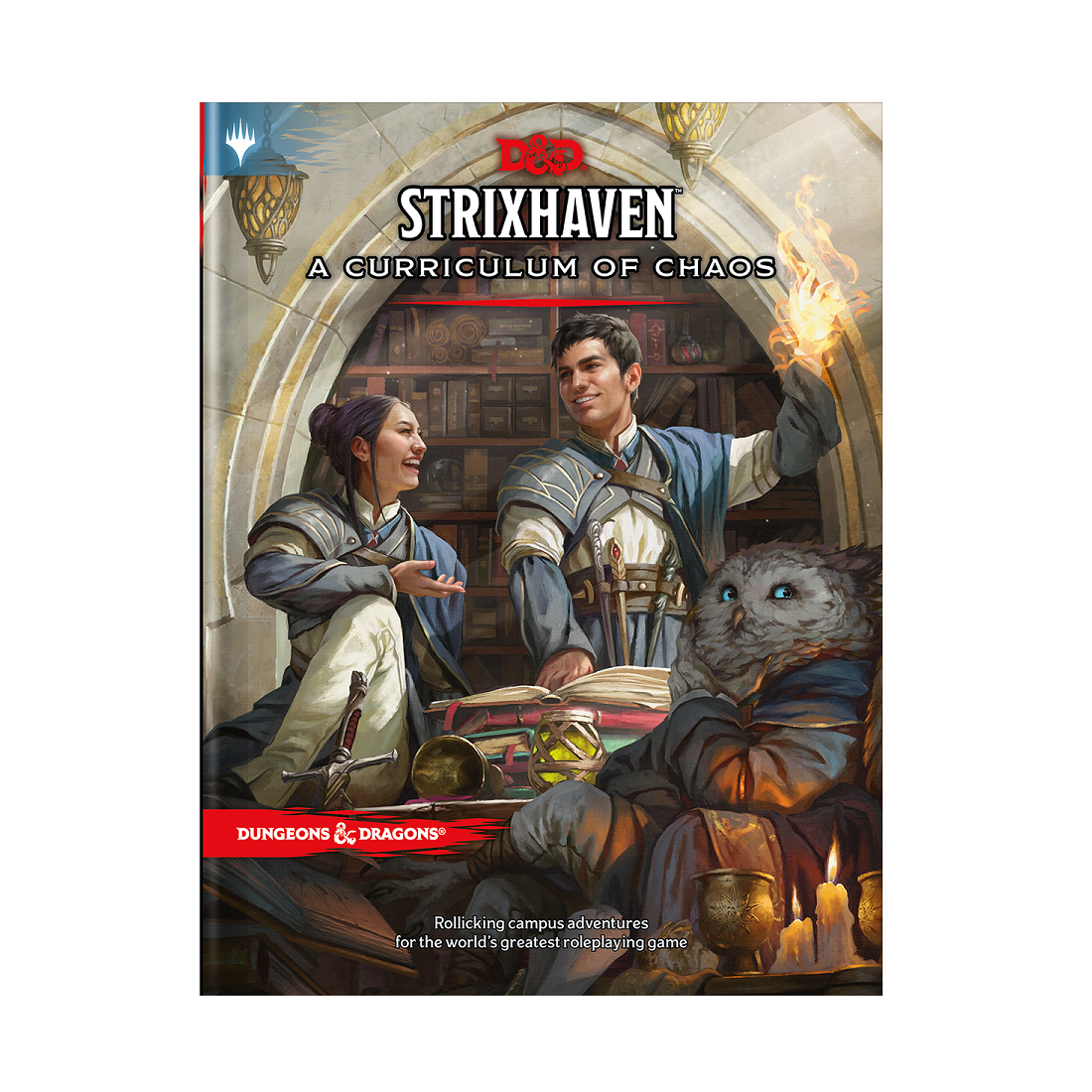 Strixhaven: A Curriculum of Chaos introduces the fantastical setting of Strixhaven University, drawn from the multiverse of Magic: The Gathering, and provides rules for creating characters who are students in one of its five colleges. Characters can explore the setting over the course of four adventures, which can be played together or on their own. Each adventure describes an academic year filled with scholarly pursuits, campus shenanigans, exciting friendships, hidden dangers, and perhaps even romance.