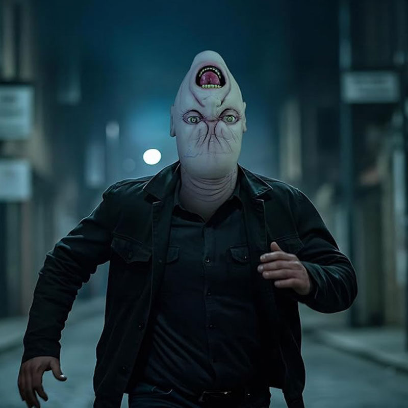 Upside Down maska, delo umetnika Jeffa Deatha, donosi jezivu i potpuno nesvakidašnju viziju horora. Izobličeno lice sa „obrnutim“ ustima i prodornim pogledom garantuje reakcije gde god da se pojavite.