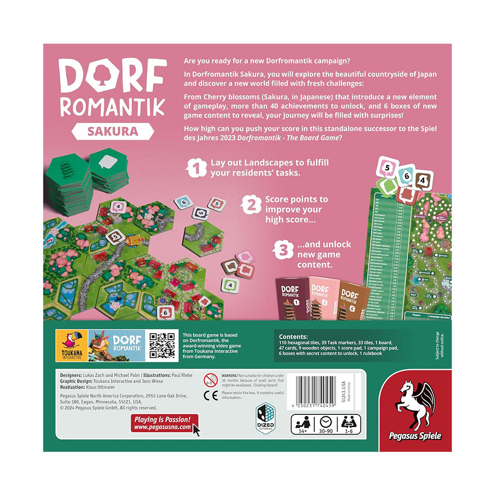 Dorfromantik: Sakura je samostalni nastavak igre Dorfromantik – The Board Game, dobitnika prestižne nagrade Spiel des Jahres 2023.