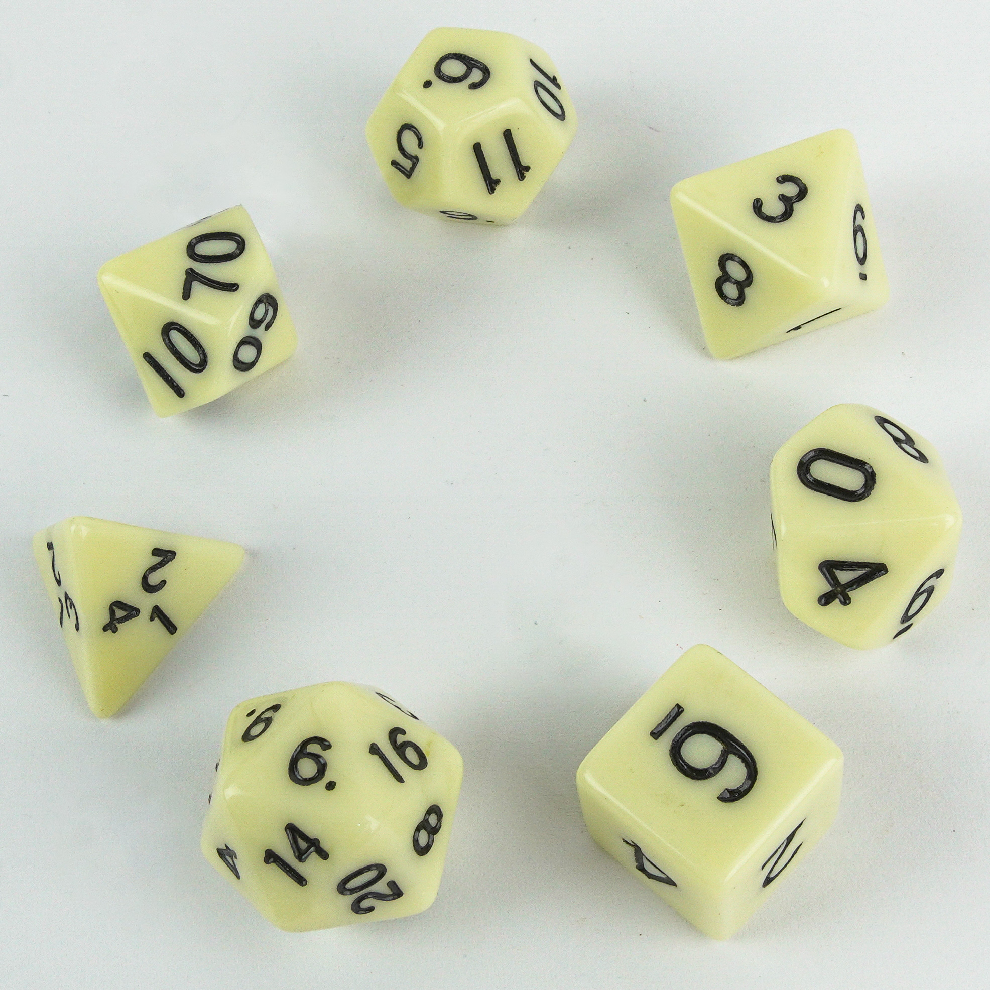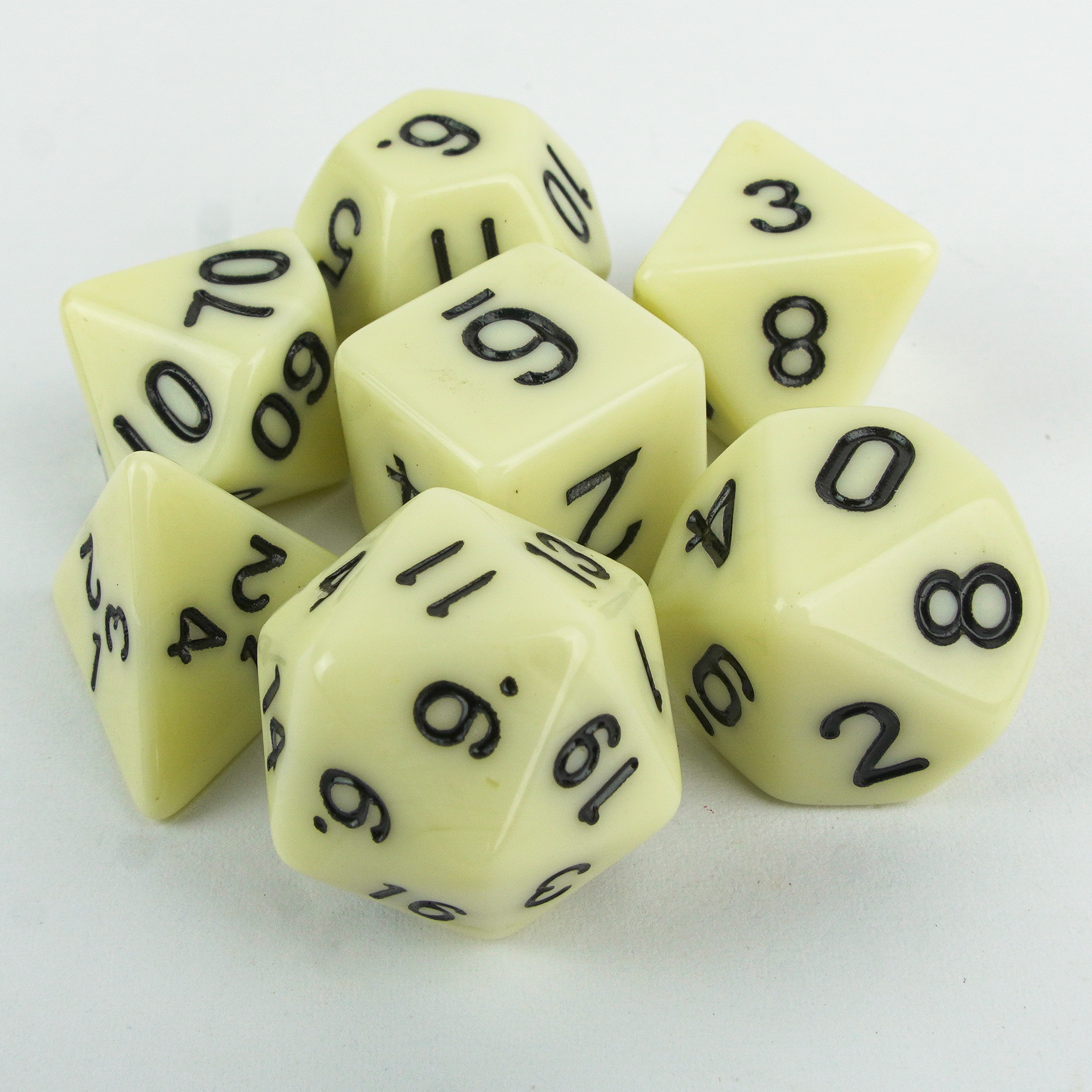 1. Raznovrsne Kocke: Set se sastoji od sedam različitih kockica (D4, D6, D8, D10, D12, D20 i D100), pokrivajući sve potrebe vaših avantura na stolu.