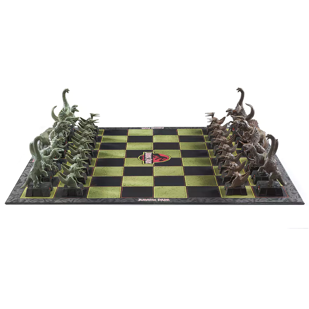 Oživite legendarnu borbu za opstanak u praistorijskom stilu uz Jurassic Park Chess Set – šahovski set koji spaja klasičnu strategiju sa kultnim dinosaurima iz filmskog serijala! Umesto tradicionalnih figura, ovde vas očekuje epski okršaj T. rexa, velociraptora, dilofosaurusa i ostalih dinosaurusa koji će uneti potpuno novu dimenziju taktike u svaku partiju.