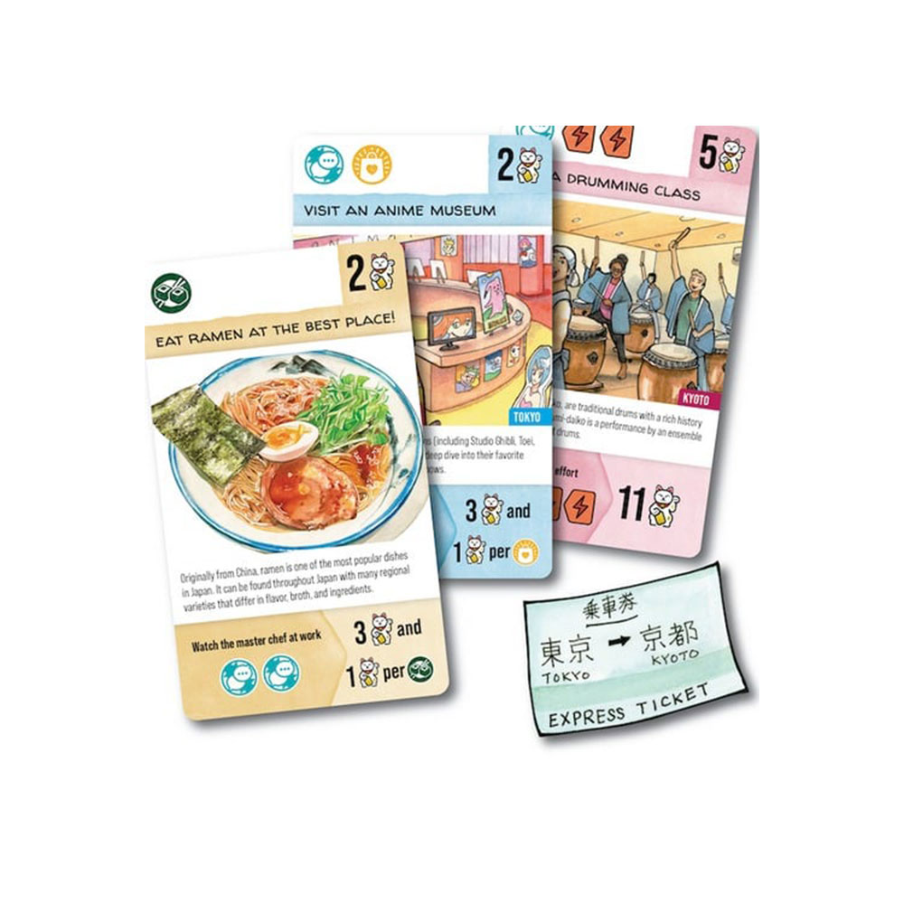 Igra traje trinaest rundi. Svake runde izvlačiš activity karte (ilustrovane od strane umetnika iz Japana) i smeštaš ih u dane svog sedmodnevnog itinerera. Aktivnosti te vode između Tokija i Kyota, dok pokušavaš da napraviš najbolji mogući raspored, uz pažljivo balansiranje resursa.