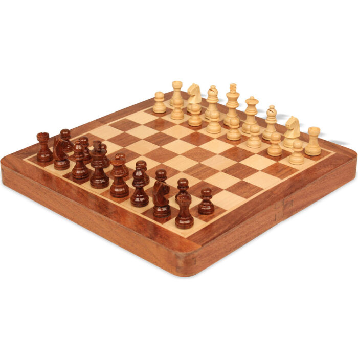 Wooden Folding Magnetic Travel Chess Set – 10″