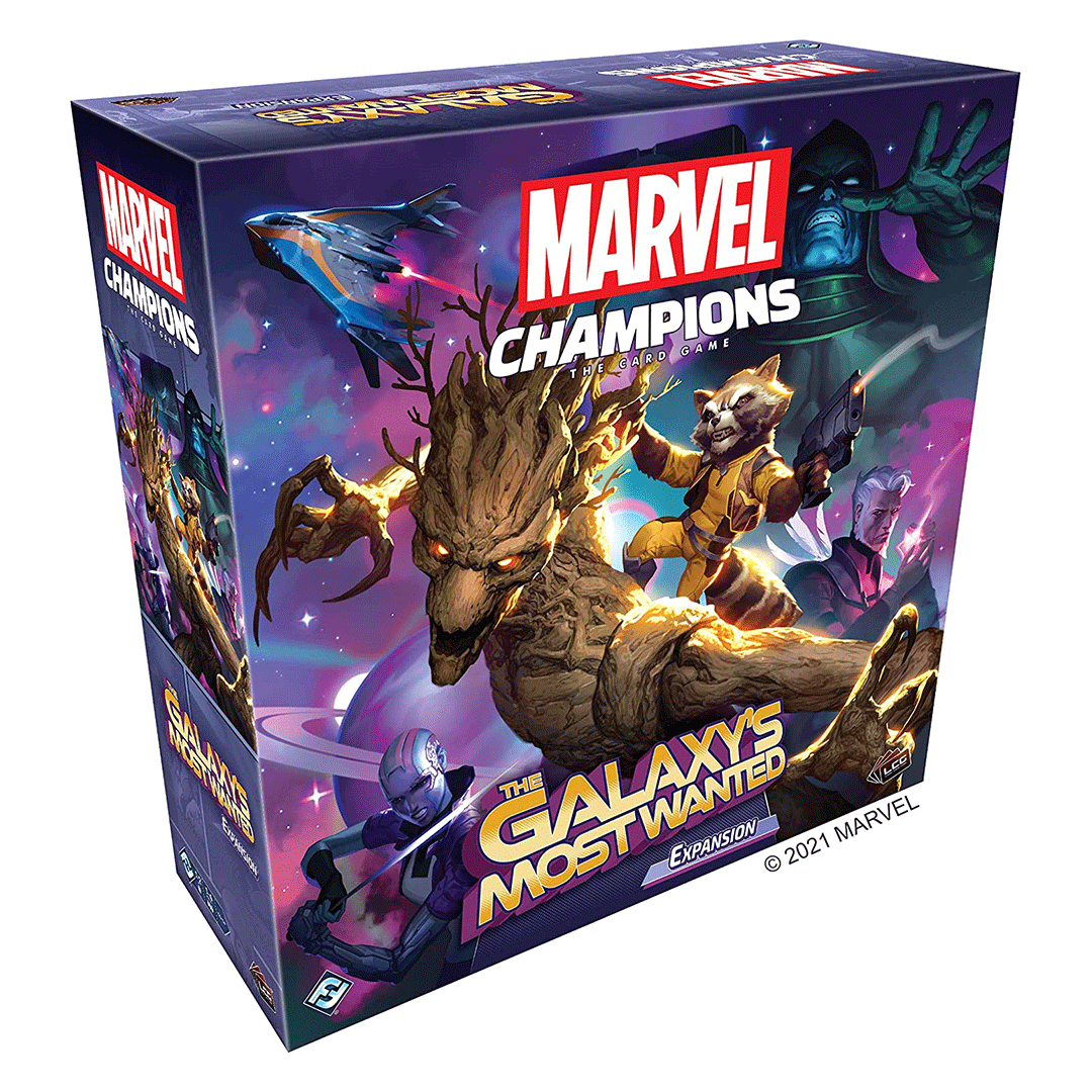 The Galaxy’s Most Wanted kampanjska ekspanzija dodaje preko 250 novih karata u Marvel Champions: The Card Game. Rocket Racoon i Groot se pridružuju spisku heroja sa potpuno unapred izgrađenim i spremnim za igru špilovima punim novih karata. Bilo da igraju kao ovi novi heroji ili se oslanjaju na stare favorite, igrači mogu testirati svoju hrabrost protiv četiri potpuno nova zlikovca: Drang iz Brotherhood of Badoon, the Collector (predstavljen u dva odvojena scenarija), Nebula i Ronan the Accuser. Svaki od ovih pet scenarija nudi jedinstven izazov koji se može igrati samostalno ili kao deo veće kampanje.