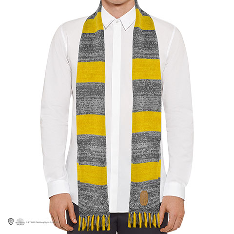 For all its enchanted fires, Hogwarts can get rather chilly and draughty during the winter months. Wrap up warm with this officially licensed Newt Scamander Hufflepuff scarf that looks just like the one worn by the famed Magizoologist during his trip to New York. Made from soft and snuggly acrylic wool, it bears yellow and grey stripes and a patch showing Newt’s monogram at one end. This film prop replica scarf is long enough to keep your neck and shoulders warm – while showing off your house pride – and makes an excellent winter gift for Fantastic Beasts fans and collectors.