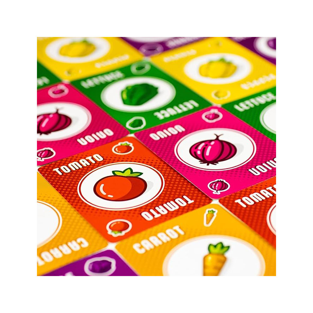 Na primer: jedna karta može davati +2 poena za svaku šargarepu, ali –1 poen za svaki crni luk. Cilj je izabrati kombinaciju povrća i scoring kartica koja najbolje odgovara tvojoj strategiji — i tako osvojiti najviše poena.