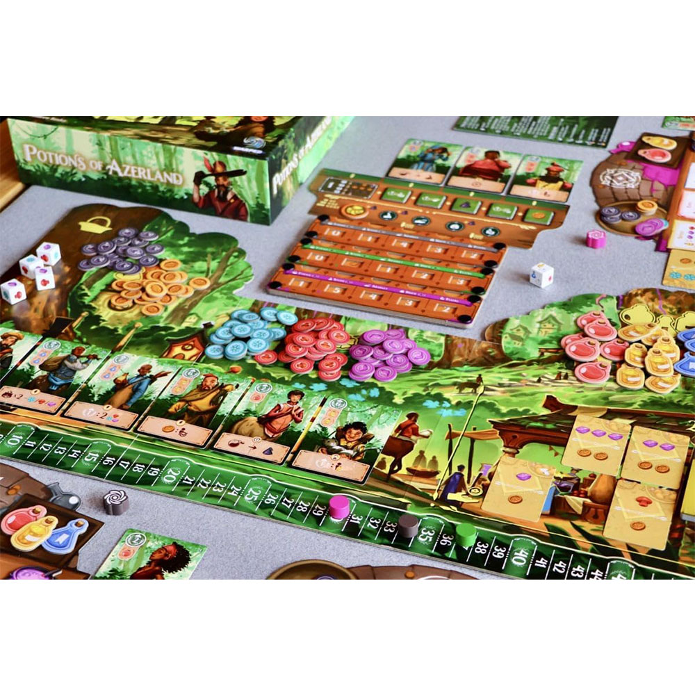 Potions of Azerland koristi jedinstven mehanizam istovremenog izbora akcija, gde razumevanje ciljeva vaših protivnika u svakoj rundi može da vam donese prednost. Odlučite da li ćete svoje sveže napravljene napitke popiti radi privremenih pojačanja i dugoročnih moći, ili ćete ih predati putnicima u zamenu za poene i druge bonuse.