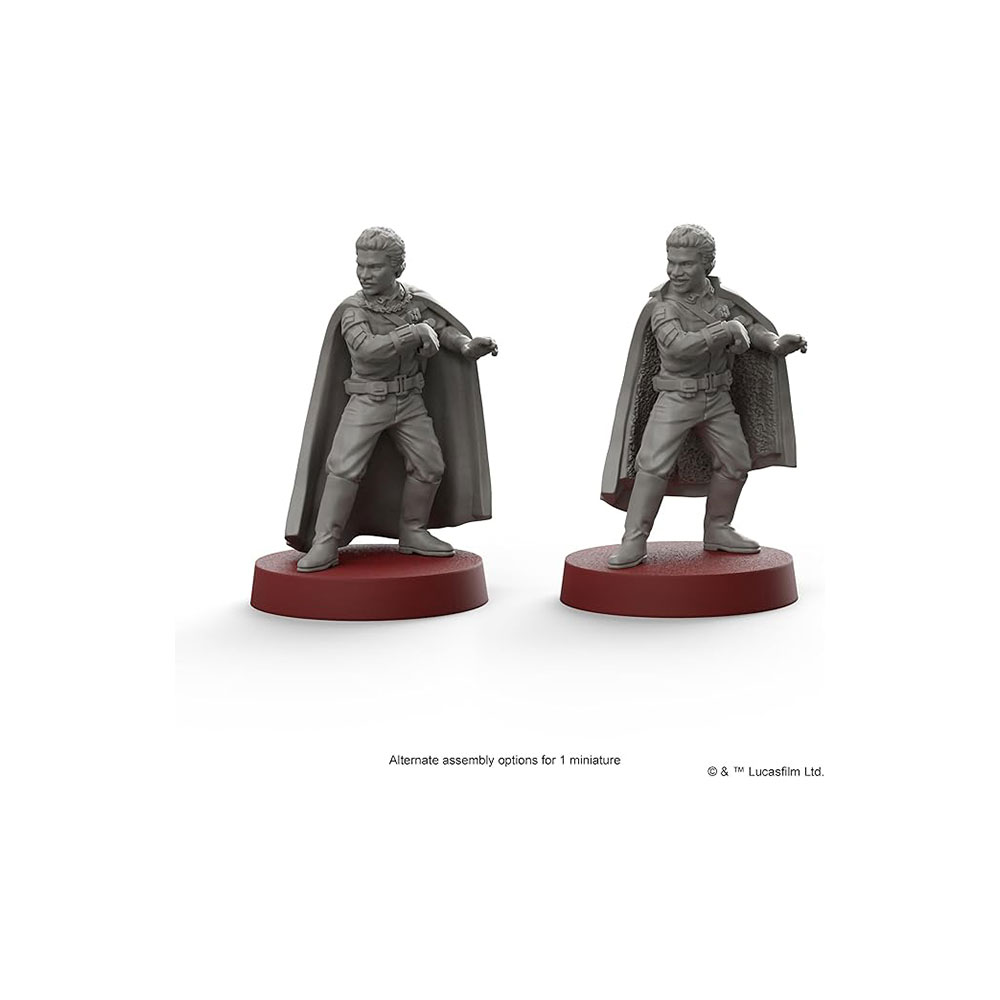 Ova ekspanzija sadrži sve što vam je potrebno da dodate Lando Calrissian kao komandanta svojih Rebel vojski, počevši od prelepo skulptovane, neofarbane miniature od tvrdog plastika koja odražava njegov jedinstveni stil. Pored toga što imate tri različite opcije za njegov prepoznatljivi plašt, moći ćete da birate između dve izraze lica i da odlučite da li Calrissian poseže za X-8 Night Sniper Pistol u futroli ili je drži spremnu za akciju.