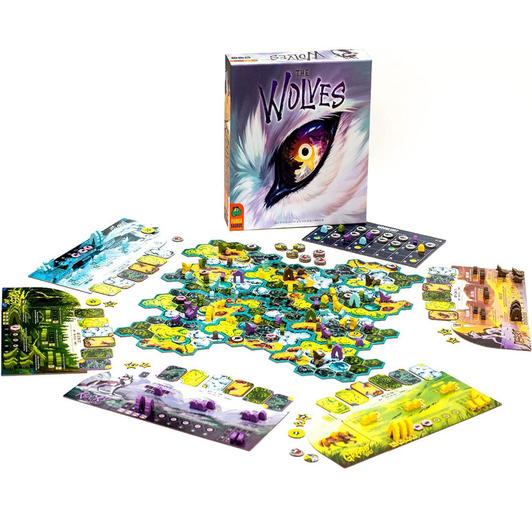The Wolves je strateška društvena igra za 2–5 igrača zasnovana na pack-building mehanici. Cilj je da vaš čopor postane najveći i najdominantniji tako što ćete osvajati teritorije, regrutovati usamljene vukove i loviti plen. Ali oprez – ako se previše agresivno proširite na teren gde dominiraju protivnici, oni mogu da privuku članove vašeg čopora na svoju stranu.