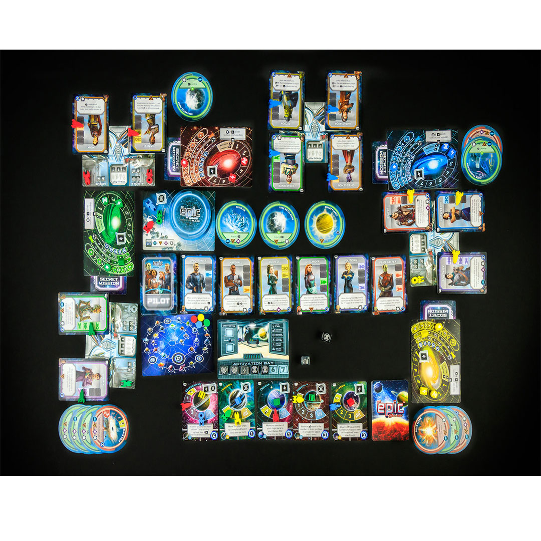 U ekspanziji Tiny Epic Galaxies: Beyond the Black, igrači dobijaju pristup novim brodovima koje mogu unaprediti tako što unajmljuju specijalizovane pilote. Svaki pilot ima jedinstvenu sposobnost, a cena unajmljivanja se smanjuje ako pilot upravlja baš tim tipom broda. Piloti se biraju trošenjem neiskorišćenih kockica određenog tipa broda, a pored toga donose i pobedničke poene.