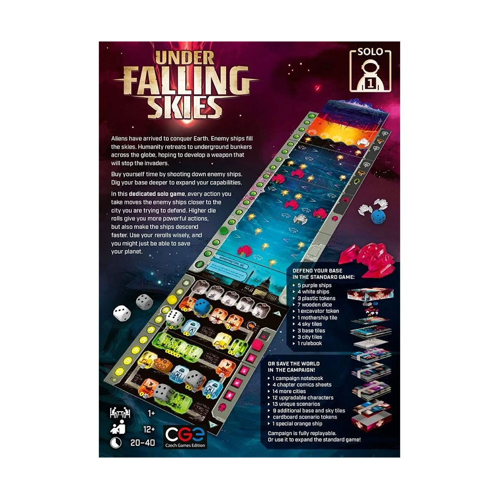 Under Falling Skies je solo društvena igra sa kampanjom koja se sastoji od više misija. U svakoj misiji preuzimaš ulogu komandanta koji brani opsednuti grad.
