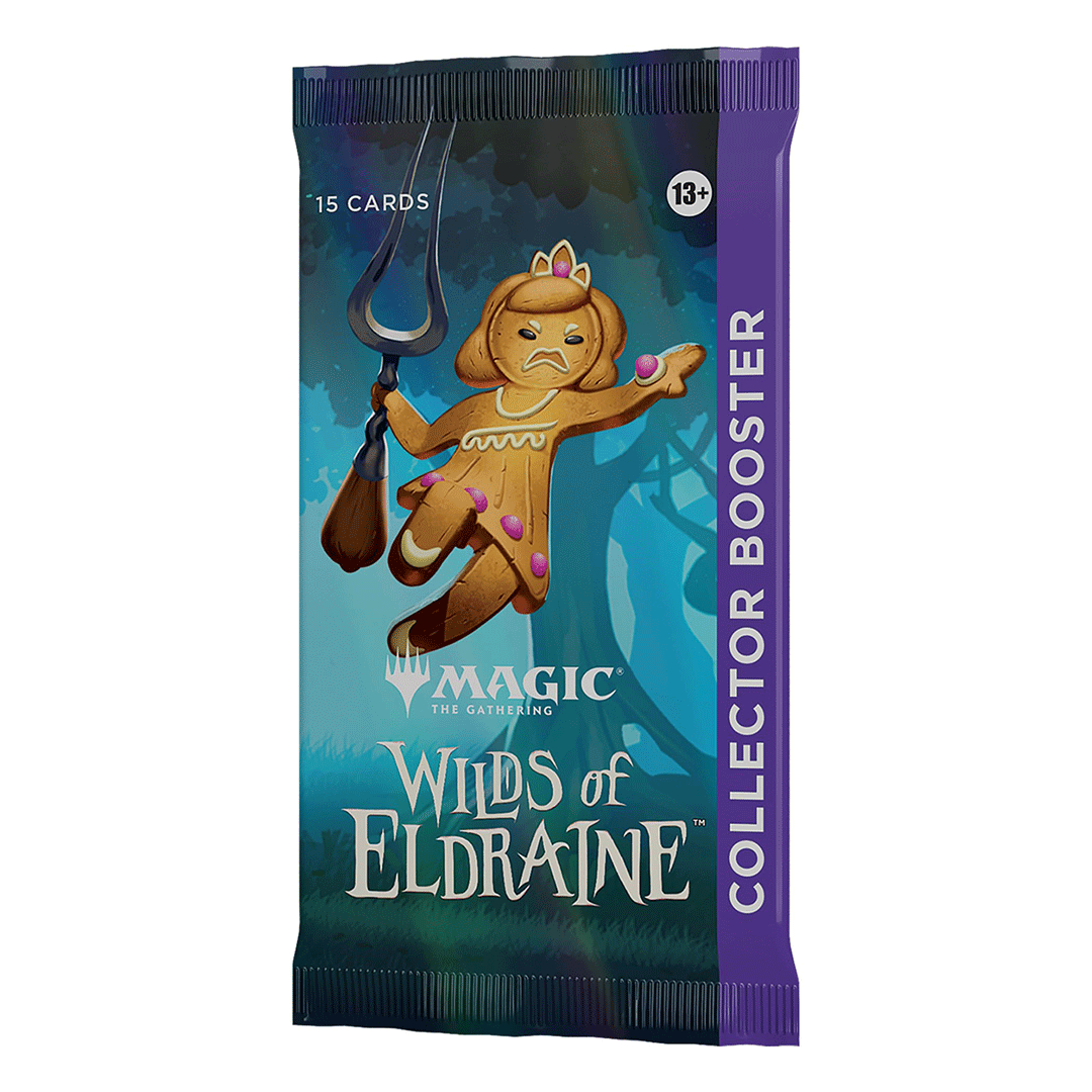 Each Collector Booster contains 15 Magic: The Gathering cards and 1 Traditional Foil double-sided token, with a combination of 5 cards of rarity Rare or higher, 5 Uncommon, 4 Common, and 1 Full-Art Showcase Land cards. Every pack contains a total of 10–12 Traditional Foil cards. A special Confetti Foil Enchanting Tales card can be found in 2% of Collector Boosters.