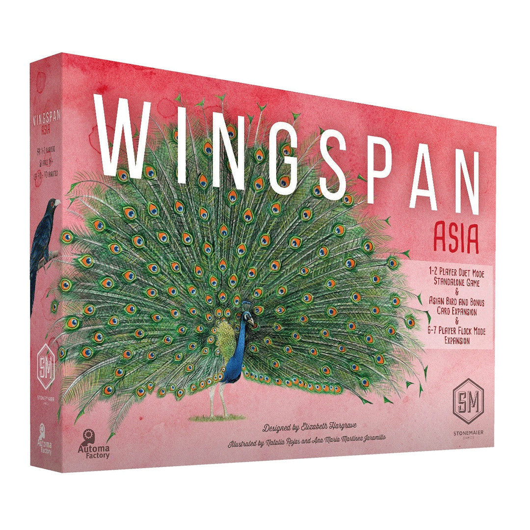 Treća ekspanzija za Wingspan donosi nove vrste u naša staništa istraživanjem živopisnih, intrigantnih i veličanstvenih ptica Azije. Ove ptice su odabrane među više od 2.800 vrsta koje žive u Aziji.